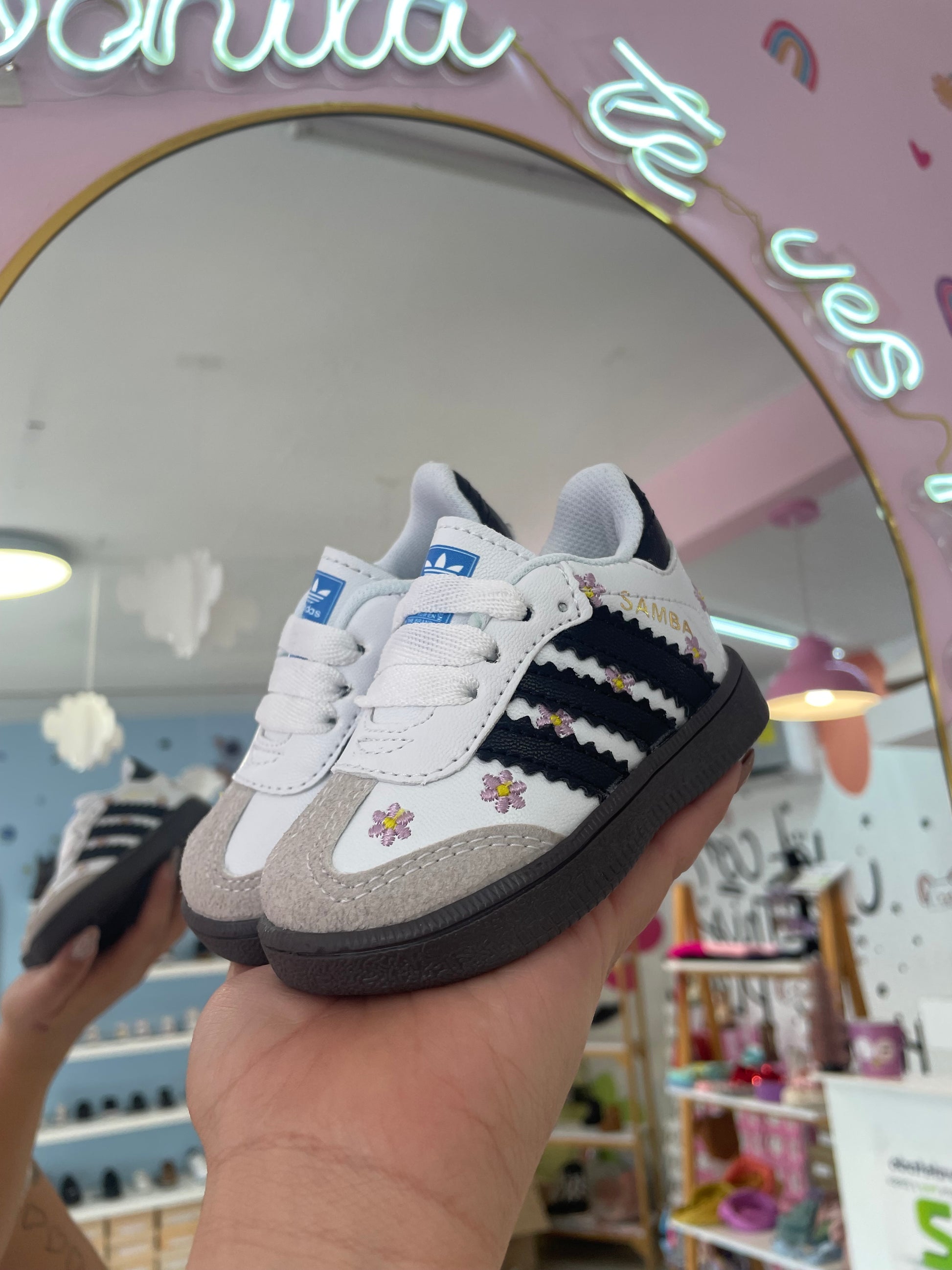 Samba Blanco/Negro Flores